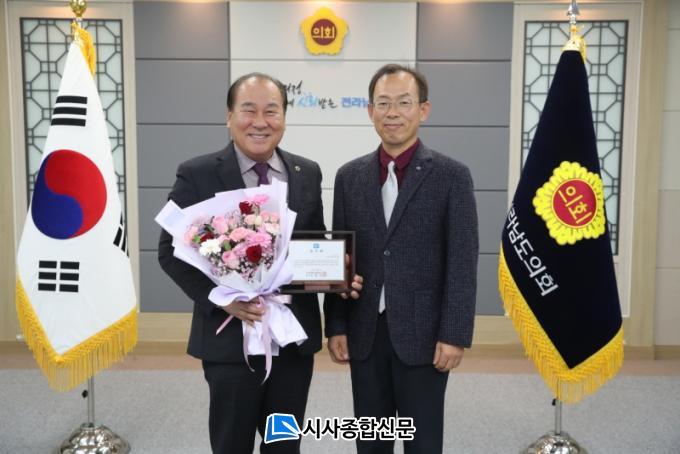 ÁÖÈ«º¸ ¼öÇù Àü³²º»ºÎÀåÀº ¡°°Á¤ÀÏ ÀÇ¿ø´ÔÀº ³ó¼ö»êÀ§¿øÈ¸ Ȱµ¿»Ó¸¸ ¾Æ´Ï¶ó °¢Á¾ ¿¬±¸È¸, Ưº°À§¿øÈ¸ Ȱµ¿À» À̾î¿À¸ç Àü³²ÀÇ ¼ö»ê¾÷ Çö¾È ¹®Á¦ ÇØ°áÀ» À§ÇØ ³ë·ÂÇØ¿À¼ÌÀ¸¸ç ƯÈ÷, ÀϺ» ¿øÀü ¿À¿°¼ö ¹æ·ù¿¡ µû¸¥ ¼ö»ê¾÷ ´ëÃ¥ ¸¶·Ã¿¡ Å« ¿ªÇÒÀ» Çϼ̴١±¸ç °¨»çÆÐ ¼ö¿© ÀÌÀ¯¸¦ ¹àÇû´Ù.