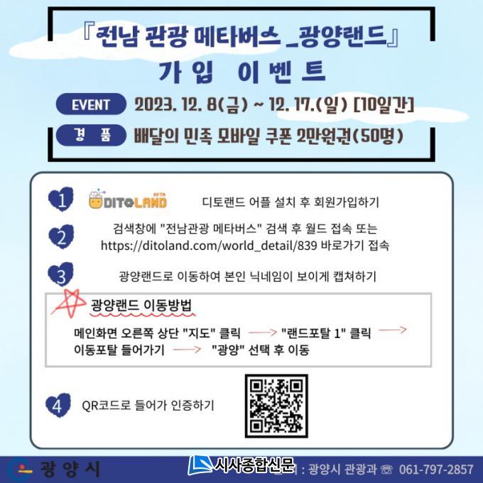 ½Ã´Â ¿À´Â 8ÀϺÎÅÍ Àü³² °ü±¤ ¸ÞŸ¹ö½º-±¤¾ç·£µå Á¢¼Ó ÀÎÁõ ½Ã Ãß÷À» ÅëÇØ ¸ð¹ÙÀÏ »óǰ±ÇÀ» ÁõÁ¤ÇÏ´Â À̺¥Æ®¸¦ 17ÀϱîÁö ¿Èê°£ ¿î¿µÇÑ´Ù.