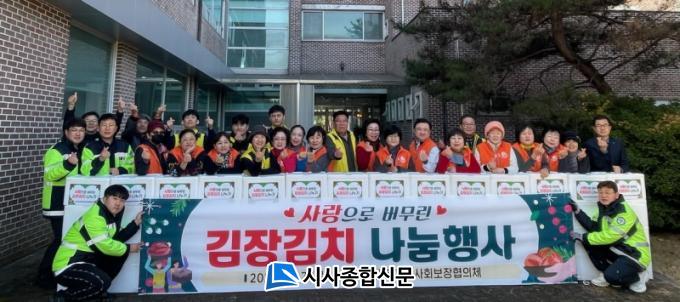 À̹ø Çà»ç´Â ±ÝÈ£µ¿ Áö¿ª»çȸº¸ÀåÇùÀÇü¸¦ ÁÖ°üÀ¸·Î Áö¿ª ³» »çȸ´ÜüÀå°ú ÀÚ¿øºÀ»çÀÚ 40¿© ¸íÀÌ Âü¿©ÇÑ °¡¿îµ¥ ±èÄ¡ Àç·á¸¦ ¼ÕÁúÇÏ°í ¿µ¾çÀ» °í·ÁÇÑ ¾ç³äÀ» ¸¸µé¾î 300Æ÷±âÀÇ ±èÀå±èÄ¡¸¦ Á÷Á¢ ´ã°¡ Ãë¾à°èÃþ 50°¡±¸¿¡ Àü´ÞÇß´Ù.