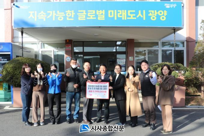 ±Ý½ÇÁ¶°æÄÁ¼³ÆÃ(´ëÇ¥ ±è¿ëÁø), Çö´ëÀÚµ¿Â÷ºí·çÇÚÁî¿©¼Á¡(´ëÇ¥ Ȳµ¿¿¬)Àº Áö³ 7ÀÏ ÀÌ¿ô»ç¶û ¼º±Ý °¢°¢ 1¹é¸¸ ¿ø¾¿, ÃÑ 2¹é¸¸ ¿øÀÇ ¼º±ÝÀ» (Àç)±¤¾ç½Ã»ç¶û³ª´®º¹ÁöÀç´ÜÀ» ÅëÇØ ºÀ°¸éÁö¿ª»çȸº¸ÀåÇùÀÇü¿¡ ÁöÁ¤±âŹÇß´Ù.