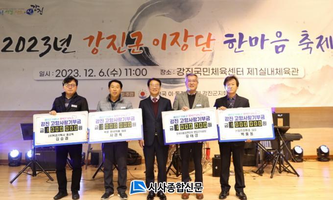 °Áø±º¿¡ µû¸£¸é Áö³ 6ÀÏ, ¡®2023³â °Áø±º ÀÌÀå´Ü ÇѸ¶À½ ÃàÁ¦¡¯ Çà»ç¿¡¼ Àü±¹ ÀÌÅëÀ忬ÇÕȸ ¿µ¾Ï±º À¯Å°æ ÁöȸÀå, ºòÄıâȹ»ç ±è½Â°â ÃѰ¨µ¶, ¢ßŽÁøÄ£È¯°æ ¹éÈ«µ¿ ´ëÇ¥, ¸ñÆ÷ Çѱ¹ºßÆä ¼°æ¿Á ´ëÇ¥°¡ °íÇâ»ç¶û±âºÎ±Ý 100¸¸¿øÀ» °¢°¢ ±âŹÇß´Ù.