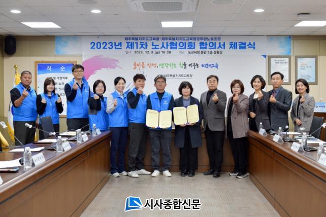 [½Ã»çÁ¾ÇսŹ® = °í¼º¹Î ±âÀÚ] Á¦ÁÖÆ¯º°ÀÚÄ¡µµ±³À°Ã»(±³À°°¨ ±è±¤¼ö)°ú Á¦ÁÖÆ¯º°ÀÚÄ¡µµ±³À°Ã»°ø¹«¿ø³ëµ¿Á¶ÇÕ(À§¿øÀå °í⼺, ÀÌÇÏ¡°Á¦ÁÖ±³À°³ëÁ¶¡±)Àº 2023³â Á¦1Â÷ ³ë»çÇùÀÇȸ ÇÕÀǼ ü°á½ÄÀ» 2023³â 12¿ù 8ÀÏ(±Ý) 16:30¿¡ µµ±³À°Ã» 2Ãþ »óȲ½Ç¿¡¼ °³ÃÖÇÏ¿´´Ù.