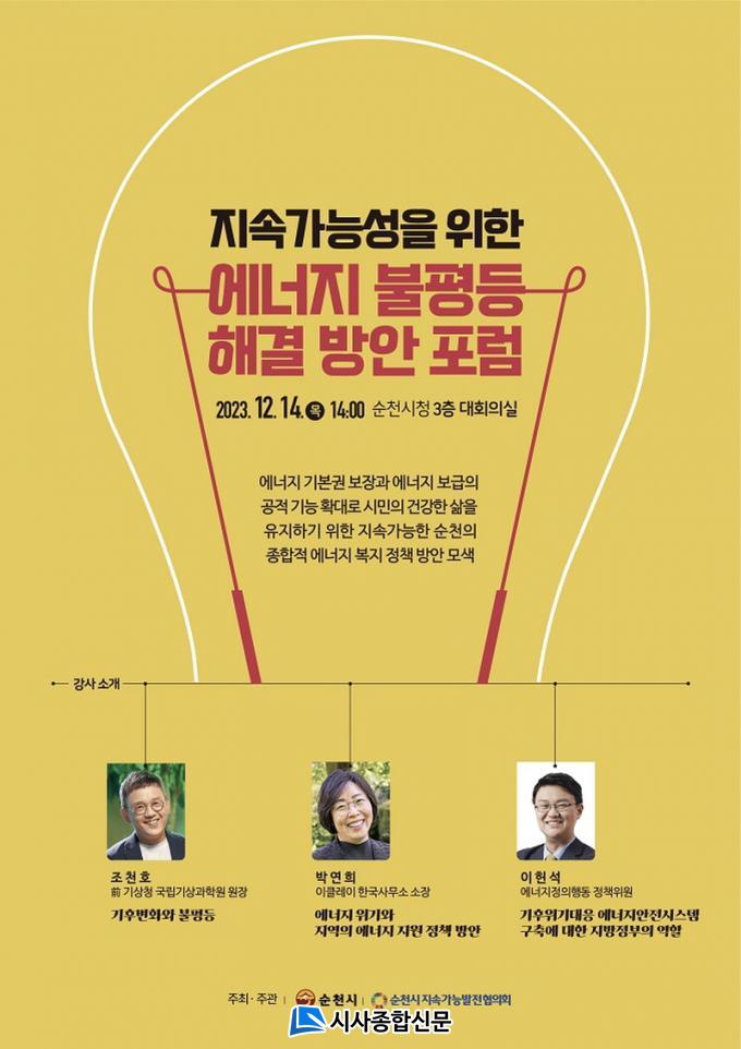| ¼øÃµ½Ã, ¡®¿¡³ÊÁö ºÒÆòµî ÇØ°á ¹æ¾È Æ÷·³¡¯ °³ÃÖ 12¿ù 14ÀÏ ½Ãû ´ëȸÀǽǿ¡¼ ¿¹Á¤¡¦ ¿¡³ÊÁö Á¤Ã¥ ¹æ¾È ¸ð»ö |