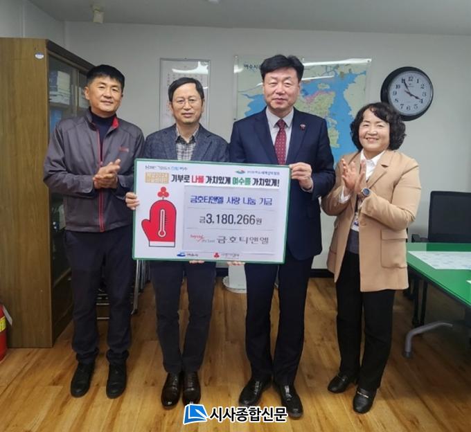 [½Ã»çÁ¾ÇսŹ® = ¿À½ÂÅà ±âÀÚ] ¿©¼ö±¹°¡ »ê´Ü ³» ¼ÒÀçÇÑ ±ÝȣƼ¾Ø¿¤(ÁÖ)°¡ Áö³ 12ÀÏ Á÷¿ø±Þ¿© ³¡ÀüÀ» ¸ðÀº ÈÄ¿ø±ÝÀ» ¿©¼ö½Ã¿¡ Àü´ÞÇϸç ESG°æ¿µÀ» ½ÇõÇß´Ù.