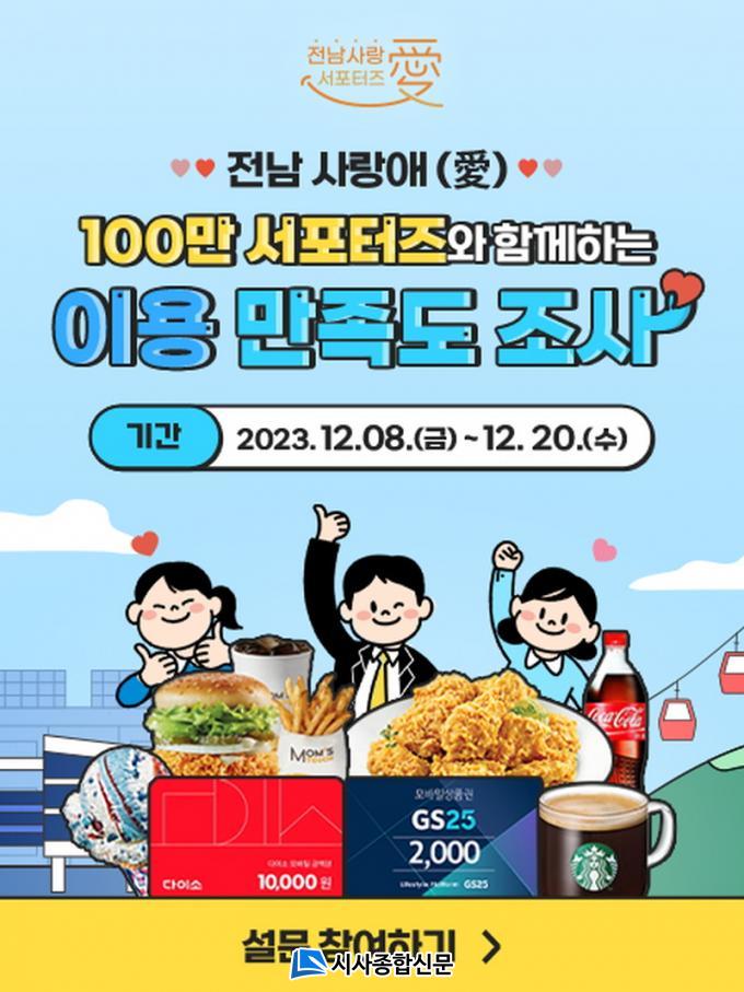 ¼³¹®Á¶»ç À̺¥Æ®´Â Àü³² »ç¶û¾Ö ¼Æ÷ÅÍÁî °¡ÀÔÀÚ°¡ 1³â ¸¸¿¡ 43¸¸ ¸íÀ» µ¹ÆÄÇÏ´Â µî °¡ÀÔÀÚ°¡ È®´ëµÊ¿¡ µû¶ó ¼ºñ½º ¼ö¿ä¸¦ ÆÄ¾ÇÇϰí, È¿À²Àû ¿î¿µ ¹æ¾ÈÀ» ¸¶·ÃÇϱâ À§ÇÑ °ÍÀÌ´Ù.À̹ø Á¶»ç´Â ¹®ÀÚ ¹× ¼Æ÷ÅÍÁî ´©¸®Áý(https://namdo2.jeonnam.go.kr), īī¿ÀÅå ä³ÎÀ» ÅëÇØ ¹ß¼ÛÇÑ ¿Â¶óÀÎ ¼³¹®Á¶»ç¸¦ ÅëÇØ ÁøÇàµÇ¸ç, Àü³² »ç¶û¾Ö ¼Æ÷ÅÍÁî¿¡ °¡ÀÔÇÑ »ç¶÷À̶ó¸é ´©±¸³ª Âü¿©ÇÒ ¼ö ÀÖ´Ù.