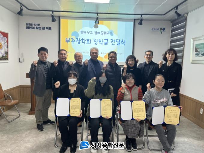 [½Ã»çÁ¾ÇսŹ® = ¿À½ÂÅà ±âÀÚ] ¸ñÆ÷½Ã ºÎÁÖµ¿ ºÎÁÖÀåÇÐȸ(ȸÀå ¼¿Àõ)°¡ Áö³ 14ÀÏ µ¿ ÇàÁ¤º¹Áö¼¾ÅÍ 2Ãþ ¼ÒȸÀǽǿ¡¼ ÀåÇÐ±Ý Àü´Þ½ÄÀ» °¡Á³´Ù.