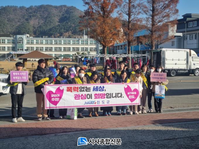 Áøµµ±º¿©¼º´ÜüÇùÀÇȸ ȸ¿øµé°ú Áøµµ±º °¡Á·¼¾ÅÍ Á÷¿ø µî ±â°ü´Üü 40¿©¸íÀÌ Âü¿©ÇØ ±º¹ÎµéÀÇ ÀÎ½Ä °³¼±À» À§ÇØ È«º¸¹°°ú ¾È³»ÆÇÀ» µé¸ç ±æ°Å¸® ÇàÁøÀ» ÁøÇàÇß´Ù.