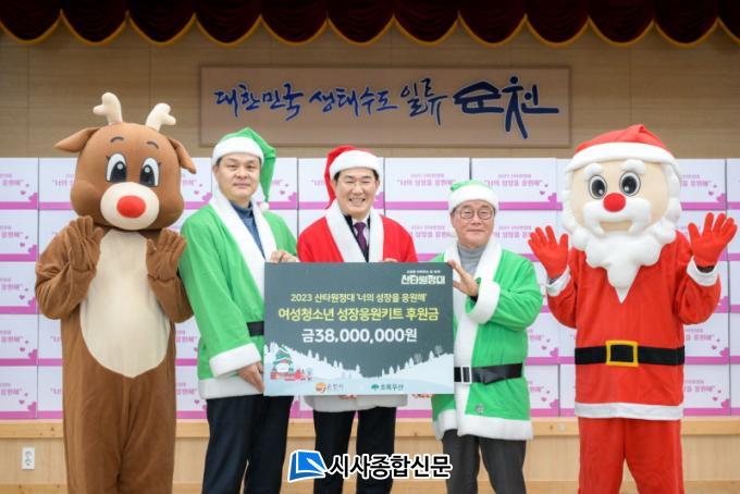 ÇÑÆí, À̹ø Çà»ç¸¦ À§ÇØ ³ë°ü±Ô ¼øÃµ½ÃÀåÀ» ºñ·ÔÇÏ¿© ÃÊ·Ï¿ì»ê ¼øÃµÈÄ¿øÈ¸(ȸÀå °íÈ£¹®), ¼øÃµ¼¼¹«¼(¼Àå °º´¼ö), ¼øÃµ°æÂû¼(¼Àå ±è³²Èñ), Çѱ¹Ã»¼Ò³âÀ°¼ºÈ¸ ¼øÃµ½ÃÁöºÎ(ÁöºÎÀå Á¤Á¾¿À) µî ÈÄ¿øÀÚ 30¿© ¸íÀÌ ¾ÆÀ̵éÀÇ ¼±¹°À» Á÷Á¢ Æ÷ÀåÇØ ´«±æÀ» ²ö´Ù.
