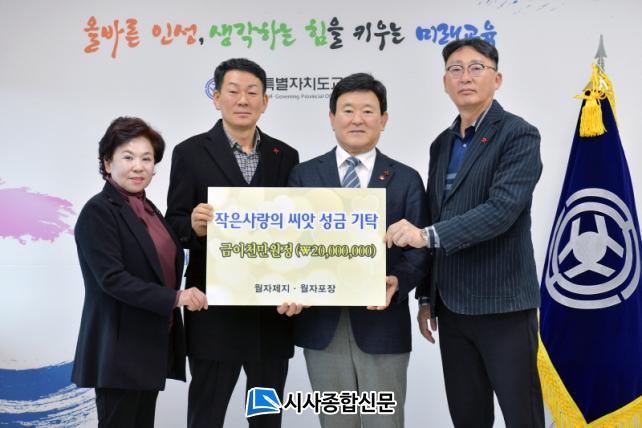 [½Ã»çÁ¾ÇսŹ® = °í¼º¹Î ±âÀÚ] ¢ß¿ùÀÚÁ¦Áö(´ëÇ¥ ÀÌâ¿ë)¡¤(ÁÖ)¿ùÀÚÆ÷Àå(´ëÇ¥ ÀÌâÇå)¿¡¼ Áö³ 18ÀÏ¡®ÀÛÀº »ç¶ûÀÇ ¾¾¾Ñ¡¯¼º±ÝÀ¸·Î Á¦ÁÖÆ¯º°ÀÚÄ¡µµ±³À°Ã»(±³À°°¨ ±è±¤¼ö)¿¡ 2õ¸¸¿øÀ» ±âŹÇß´Ù.