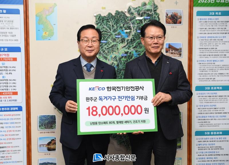 [½Ã»çÁ¾ÇսŹ® = ±è¿¬Èñ ±âÀÚ] Çѱ¹Àü±â¾ÈÀü°ø»ç(»çÀå ¹ÚÁöÇö)°¡ ¿ÏÁÖ±º¿¡ 1,400¸¸ ¿ø »ó´çÀÇ Åº¼Ò¸ÅÆ® 80°³¸¦ Àü´ÞÇß´Ù.