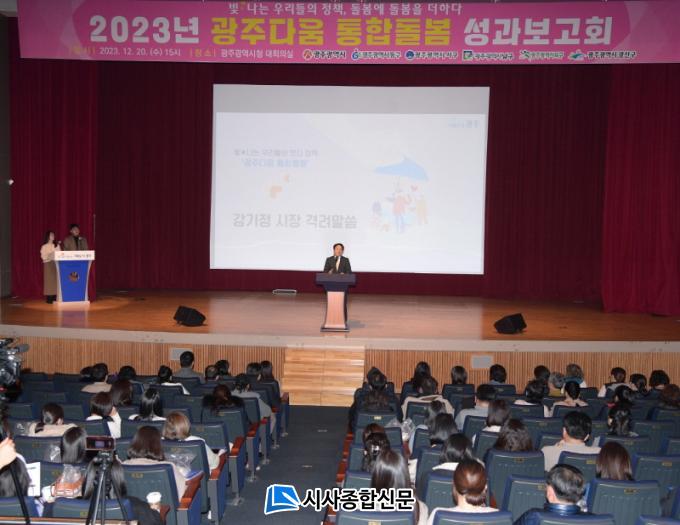 À̳¯ ¼º°úº¸°íȸ¿¡¼´Â ¡®±¤ÁÖ´Ù¿ò ÅëÇÕµ¹º½¡¯ »ç¾÷ÀÇ ÇÙ½ÉÀû ¿ªÇÒÀ» ¼öÇàÇÏ´Â 97°³ µ¿ÇàÁ¤º¹Áö¼¾ÅÍ »ç·Ê°ü¸® ´ã´ç °ø¹«¿ø°ú Á÷Á¢ ¼ºñ½º¸¦ Áö¿øÇÏ´Â 38°³ ¹Î°£ Á¦°ø±â°ü µ¹º½Á¾»çÀÚ µîÀÌ Âü¿©ÇØ »ç·Ê µîÀ» ¼Ò°³Çß´Ù.