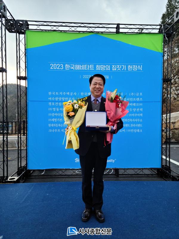 | ¿©¼ö±¤¾çÇ׸¸°ø»ç ¹Ú¼ºÇö »çÀåÀÌ ¡®2023 Èñ¸ÁÀÇ ÁýÁþ±â¡¯ ÇåÁ¤½Ä¿¡¼ Çѱ¹ÇغñŸƮ·ÎºÎÅÍ °¨»çÆÐ¸¦ ¼ö¿©¹Þ°í ±â³ä ÃÔ¿µÀ» Çϰí ÀÖ´Ù. |