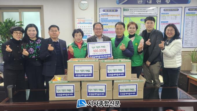 [½Ã»çÁ¾ÇսŹ® = ¿À½ÂÅà ±âÀÚ] °î¼º±º °î¼ºÀ¾»õ¸¶À»È¸°¡ Áö³ 21ÀÏ, °î¼ºÀ¾ ÇàÁ¤º¹Áö¼¾Å͸¦ ¹æ¹®ÇØ Ãß¿î °Ü¿ï¿¡ ³¢´Ï ÇØ°áÀÌ ¾î·Á¿î Áö¿ªÀÇ È¦¸ö ¾î¸£½ÅÀ» À§ÇØ 50¸¸ ¿ø »ó´çÀÇ ½Ä·áǰ ²Ù·¯¹Ì 5°³¸¦ ±âºÎÇß´Ù.