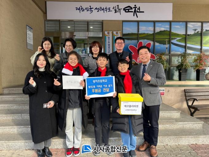 ¶Ç, ¼øÃµ¿ÕÁöÃʵîÇб³(±³Àå ÀüÈñ)´Â Áö³ 20ÀÏ ÇлýµéÀÌ ½Ê½ÃÀÏ¹Ý ¸ðÀº ±âºÎ±Ý°ú ¡®¿ÕÁö¿¡ÄÚÇø®¸¶ÄÏ¡¯¿¡¼ ³ª¿Â ¼öÀÍ±Ý ¾à 50¸¸ ¿øÀ» ±âºÎÇß´Ù. ¿ÕÁöÃʵîÇб³ Çлýȸ °ÁöÈÆ(ÃÊ6), Á¤ÇÏÀ±(ÃÊ6), ±Ç¼Áø(ÃÊ5) Çлý°ú ´ã´ç ¾È¼øÇü ¼±»ý´ÔÀÌ ÇàÁ¤º¹Áö¼¾Å͸¦ Á÷Á¢ ¹æ¹®ÇØ ±âºÎ±ÝÀ» Àü´ÞÇß´Ù. °ÁöÈÆ ¿ÕÁöÃÊ ÇлýȸÀåÀº ¡°´«ÀÌ ¿À´Â °Ü¿ï, Ä£±¸µé°ú ÇÔ²² »êŸ°¡ µÈ °Í °°¾Æ »ÑµíÇÏ´Ù¡±¸ç ¼Ò°¨À» ÀüÇß´Ù.