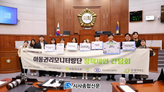 ¿ÃÇØ ±Â³×À̹ö½º Àü³²ÁߺÎÁöºÎ ¾Æµ¿±Ç¸®¸ð´ÏÅ͸µ´Ü ±Â¸ð¼Ç(Good Motion)Àº ¾Æµ¿±Ç¸® º¸È£±ÇÀ» ÁÖÁ¦·Î Ȱµ¿ÇßÀ¸¸ç Áö¿ª»çȸ ³» ¾Æµ¿ ±Ç¸® ÁõÁøÀ» À§ÇØ ¿µ»êÆ÷ÃʵîÇб³ Àü±³»ý°ú Àü³²¿Ü±¹¾î°íµîÇб³ 1, 2Çг⠾à 350¿©¸í ´ë»óÀ¸·Î ¾Æµ¿±Ç¸® ÁõÁøÀ» À§ÇÑ Á¦¾È »çÇ×À» Á÷Á¢ ûÃëÇÏ¿´´Ù. ±×¸®°í ûÃëÇÑ ³»¿ëÀ» ¹ÙÅÁÀ¸·Î ³ªÁÖ½ÃÀÇȸ¿¡¼ÀÇ °£´ãȸ¸¦ ¸¶·ÃÇØ ¡®³ªÁֽà ¾î¸°ÀÌÁý ÅëÇйö½º ¾ÈÀü¡¯¿¡ °üÇÑ Á¶·Ê ÀϺΠ°³Á¤À» ¿äûÇÏ¿´´Ù.