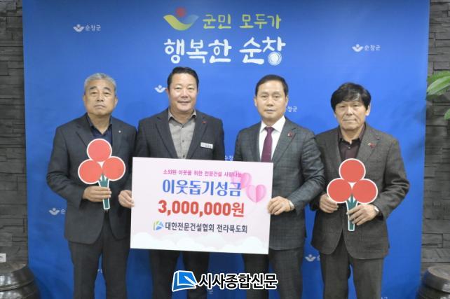 | ´ëÇÑÀü¹®°Ç¼³Çùȸ Àü¶óºÏµµÈ¸, ¼øÃ¢±º¿¡ Çö±Ý 300¸¸ ¿ø ±âŹ |