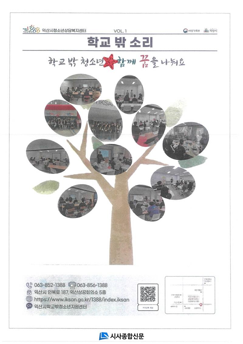 ¡®Çб³ ¹Û ¼Ò¸®¡¯´Â Çб³ ¹Û û¼Ò³âÀÌ ±âÀÚ°¡ µÇ¾î Çб³ ¹Û Áö¿ø¼¾ÅÍ ¾È¿¡¼ ÀϾ´Â ´Ù¾çÇÑ ¼Ò½ÄµéÀ» ´ãÀº ½Å¹®ÀÌ´Ù. ½Å¹®¿¡´Â ¿ÃÇØ ÁøÇàÇÑ ÇÁ·Î±×·¥ Áß ±â¾ï¿¡ ³²´Â ºûÂù¼¼Èñ û¼Ò³â´Ü, ÀÚ±â°è¹ßÇÁ·Î±×·¥, ºÀ»çȰµ¿, ¿¢½Ã¿ò(AXIOM),¹Ì´Ï¸í¶û¿îµ¿È¸, ¶Ç·¡»ó´ã, ÀÚ°ÝÁõ½ÉȰúÁ¤ µîÀÌ ¼Ò°³µÆ´Ù.