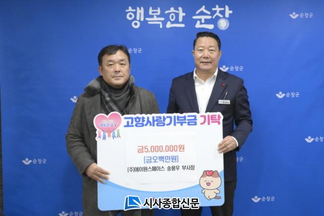 [½Ã»çÁ¾ÇսŹ® = ±è¿¬Èñ ±âÀÚ] ¼øÃ¢±ºÀº 28ÀÏ ¢ß¿¡ÀÌ¿ø½ºÆäÀ̽º ¼Û¿ë¿ì ºÎ»çÀåÀÌ ¼øÃ¢±º¿¡ °íÇâ»ç¶û±âºÎ±Ý ÃÖ°í¾×ÀÎ 500¸¸¿øÀ» ±âŹÇß´Ù°í ¹àÇû´Ù.