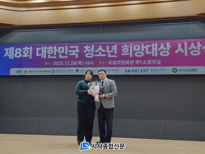 [½Ã»çÁ¾ÇսŹ® = ¿À½ÂÅà ±âÀÚ] Àü¶ó³²µµÀÇȸ ±âȹÇàÁ¤À§¿øÈ¸ ÀÓÇü¼® ÀÇ¿ø(´õºÒ¾î¹ÎÁÖ´ç, ±¤¾ç1)ÀÌ 12¿ù 28ÀÏ Ã»¼Ò³âµéÀÇ ÇູÇÏ°í °Ç°ÇÑ ¼ºÀåÀ» À§ÇØ ³ë·ÂÇÑ °ø·Î¸¦ ÀÎÁ¤¹Þ¾Æ Á¦8ȸ ´ëÇѹα¹ û¼Ò³âÈñ¸Á´ë»óÀ» ¼ö»óÇß´Ù.