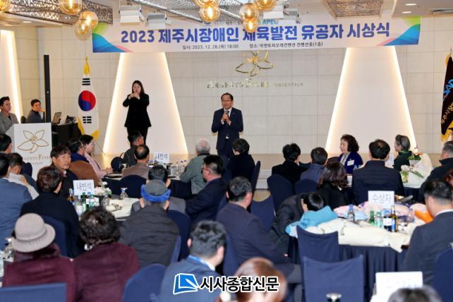 [½Ã»çÁ¾ÇսŹ® = °í¼º¹Î ±âÀÚ] °º´»ï Á¦ÁÖ½ÃÀåÀº Áö³ 28ÀÏ ¾ÆÁ¨ÅäÇÇ¿À·¹ÄÁº¥¼Ç¿¡¼ ¿¸° 2023³â Á¦Áֽà Àå¾ÖÀΠüÀ°ÀÎÀÇ ¹ã Çà»ç¿¡ Âü¼®ÇØ ¿Ã ÇÑ ÇØ üÀ°¹ßÀüÀ» À§ÇØ Çå½ÅÇÑ Ã¼À°ÀεéÀÇ ³ë°í¸¦ °Ý·ÁÇÏ´Â ½Ã°£À» °¡Á³´Ù.