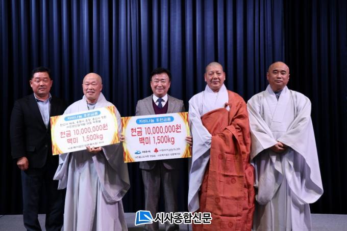 Çà»ç¿¡¼ ÀÓÁ÷¿øµéÀº Á¤¼º²¯ ¸ðÀº ¼º±Ý 1,000¸¸ ¿ø°ú ¹é¹Ì 1,500kgÀ» ¿©¼ö½Ã¿¡ Àü´ÞÇßÀ¸¸ç, ¼º±Ý°ú ¼ºÇ°Àº Àü³²»çȸº¹Áö°øµ¿¸ð±Ýȸ¿¡ ÁöÁ¤±âŹ µÅ Áö¿ª ³» ¾î·Á¿î ÀÌ¿ô¿¡°Ô Àü´Þ µÉ ¿¹Á¤ÀÌ´Ù.