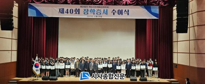 | ¿©¼ö½ÃÀÎÀçÀ°¼ºÀåÇÐȸ, Áö¿ªÇлý¿¡ ÀåÇÐ±Ý 3¾ï5¹é5½Ê¸¸¿ø Àü´Þ 28ÀÏ Çлý±³À°¹®Èȸ°ü ´ë°´ç¿¡¼ °í±³‧´ëÇлý 279¸í¿¡°Ô Áö±Þ |