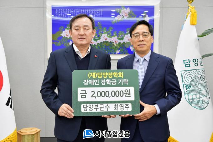 [½Ã»çÁ¾ÇսŹ® = ¿À½ÂÅà ±âÀÚ] ´ã¾ç±º¿¡ µû¸£¸é Áö³ 29ÀÏ, Á¦26´ë ÃÖ¿µÁÖ ´ã¾çºÎ±º¼ö°¡ Àӱ⸦ ¸¶¹«¸®Çϸç Àå¾ÖÀÎ ÀåÇÐ±Ý 2¹é¸¸ ¿øÀ» ±âŹ, ³²´Ù¸¥ ´ã¾ç »ç¶ûÀ» ½ÇõÇß´Ù°í ¹àÇû´Ù.