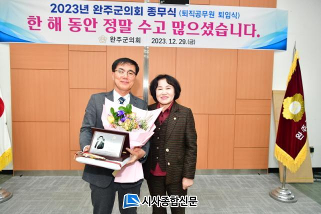 [½Ã»çÁ¾ÇսŹ® = ±è¿¬Èñ ±âÀÚ] ¿ÏÁÖ±ºÀÇȸ(ÀÇÀå ¼³²¿ë)´Â 29ÀÏ À̰æ¾Ö ºÎÀÇÀåÀ» ºñ·ÔÇÑ ÀÇ¿øµé°ú ÀÇȸ»ç¹«±¹ Àü Á÷¿øÀÌ Âü¼®ÇÑ °¡¿îµ¥ 31³â°£ÀÇ °øÁ÷ »ýȰÀ» ¸¶¹«¸®ÇÏ´Â ¿ÀÀμ® »ç¹«±¹Àå¿¡ ´ëÇÑ ÅðÀÓ½ÄÀ» °³ÃÖÇß´Ù.