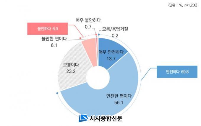 »ýȰ¾ÈÀü ºÐ¾ß¿¡¼ µµ¹ÎÀÌ Ã¼°¨ÇÏ´Â ÇöÀç °ÅÁÖÁö¿ªÀÇ ¾ÈÀüµµ Á¶»ç¿¡´Â ÀÀ´äÀÚÀÇ 69.8%°¡ ¾ÈÀüÇÏ´Ù°í ´äÇß´Ù.