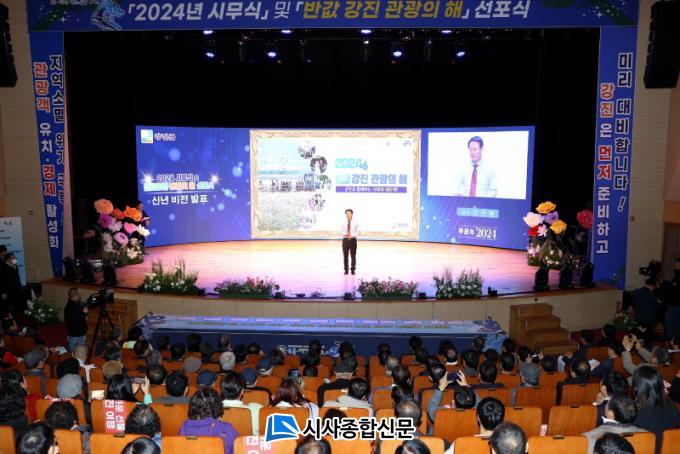 °Áø±ºÀº 2ÀÏ ¿ÀÀü °ÁøÀ¾ °Áø¾ÆÆ®È¦ ´ë°ø¿¬Àå¿¡¼ ¡®2024³â ½Ã¹«½Ä ¹× ¹Ý°ª °Áø °ü±¤ÀÇ ÇØ ¼±Æ÷½Ä¡¯À» °³ÃÖÇß´Ù. À̹ø Çà»ç´Â °í¹°°¡ µî ±¹°¡Àû °æ±âħü¿Í Áö¹æ Àα¸°¨¼Ò¿¡ µû¸¥ ¼Ò¸êÀ̶ó´Â À§±â ±Øº¹À» À§ÇØ °Áø±ºÀÌ ¼±Á¦ÀûÀ¸·Î ¡®¹Ý°ª °ü±¤¡¯À̶ó´Â ÆÄ°ÝÀûÀÎ »õ·Î¿î ºñÀüÀ» Á¦½Ã, Áö¿ª°æÁ¦ Ȱ¼ºÈ¸¦ µµ¸ðÇϱâ À§ÇØ ¸¶·ÃµÆ´Ù.