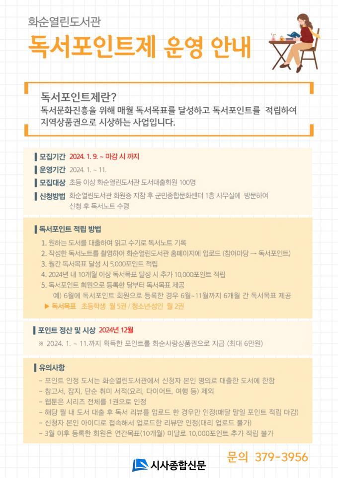 ÀÛ³â 6¿ù °ü·Ã Á¶·Ê¸¦ Á¦Á¤ÇÏ°í ½Ã¹ü ¿î¿µÀ» °ÅÃÄ ¿ÃÇØ Á¤½Ä ¿î¿µµÇ´Â µ¶¼Á¡¼öÁ¦´Â Áö¿ªÁֹε鿡°Ô µ¶¼¿¡ ´ëÇÑ µ¿±â¸¦ ºÎ¿©Çϰí, µ¶¼¹®È¸¦ È®»ê½Ã۱â À§ÇÑ »ç¾÷À¸·Î ¸Å¿ù µ¶¼ ¸ñÇ¥(ÃʵîÇлý 5±Ç, ÁßÇлý ÀÌ»ó 2±Ç) ´Þ¼º°ú ÇÔ²² ȼø¿¸°µµ¼°ü ´©¸®Áý¿¡ µ¶ÈݨÀ» µî·ÏÇϸé, ¸Å¿ù 5,000Á¡À» Àû¸³Çϰí Á¡¼ö¸¦ Á¤»êÇÏ¿© ȼø»ç¶û»óǰ±ÇÀ» Áö±ÞÇÑ´Ù.