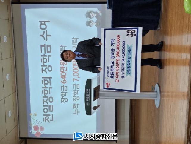 | õÀÏÀåÇÐȸ ±è°ø¼ø¼±»ý, È¿µ¿ÁßÇб³¿¡ ÀåÇÐ±Ý 10¿© ³â°£ ÃÑ 7,000¸¸¿ø ±âŹ |