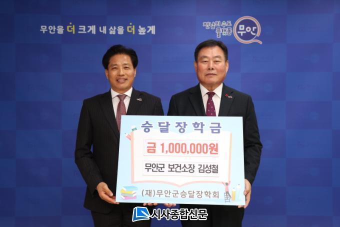 1992³â °øÁ÷¿¡ ÀÔ¹®ÇÑ ±è¼ºÃ¶ ¹«¾È±º º¸°Ç¼ÒÀåÀº 33³â°£ ÅõöÇÑ »ç¸í°¨°ú ¼Ö¼±¼ö¹üÇÑ ÀÚ¼¼·Î °Ç°ÁõÁø°úÀå, ±¹¹«ÃѸ®ºñ¼½Ç ÆÄ°ß ±Ù¹« µî ÁÖ¿ä º¸Á÷À» °ÅÄ¡¸ç ±ºÁ¤ ¹ßÀü¿¡ ¾ÕÀå¼°í ÀÖÀ¸¸ç, Æò¼Ò Áö¿ª ÀÎÀç À°¼º¿¡ ³²´Ù¸¥ ¾ÖÁ¤À» °®°í 2014³â ³²¸ô·¡ ÀåÇÐ±Ý 100¸¸ ¿øÀ» ±âºÎÇÑ °ÍÀ» ½ÃÀÛÀ¸·Î ²ÙÁØÈ÷ ÀåÇбÝÀ» ±âºÎÇϰí ÀÖ´Ù.