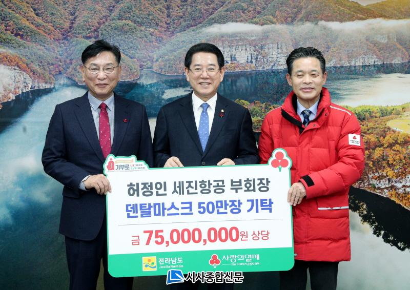 Àü³²µµ´Â 5ÀÏ ÇãÁ¤ÀÎ ¼¼ÁøÇ×°ø ºÎȸÀåÀ¸·ÎºÎÅÍ Ãë¾à°èÃþ Áö¿øÀ» À§ÇØ ¸¶½ºÅ© 50¸¸ Àå(7õ500¸¸ ¿ø »ó´ç)À» ±âºÎ¹Þ°í, Àü³²µµÃ» Á÷¿øµéÀÌ ¸ðÀº ¼º±Ý 5õ240¸¸ ¿øÀ» Àü³²»çȸº¹Áö°øµ¿¸ð±Ýȸ¿¡ Àü´ÞÇß´Ù°í ¹àÇû´Ù.