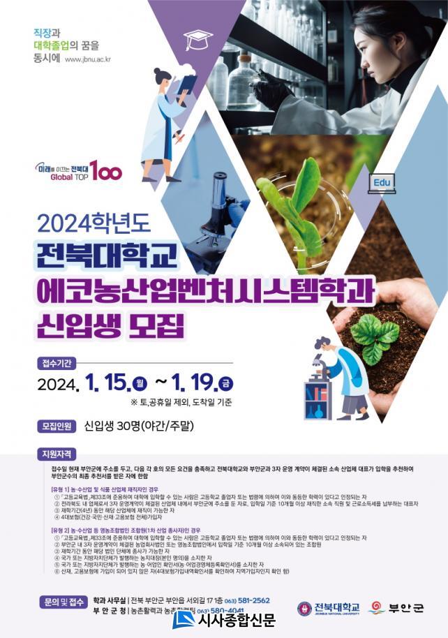 ÀüºÏ´ëÇб³ ¿¡ÄÚ³ó»ê¾÷º¥Ã³½Ã½ºÅÛÇаú´Â ³ó»ý¸í»ê¾÷ Àü¹®Àη ¾ç¼º°ú ¸ÂÃãÇü ÀçÁ÷ÀÚ Á÷¹«´É·Â °³¹ßÀ» À§ÇØ Áö³ 2021³âµµºÎÅÍ ºÎ¾È±º°ú ÀüºÏ´ëÇб³, »ê¾÷ü°¡ °è¾àÀ» ü°áÇÏ¿© ¿î¿µÇÏ´Â Àç±³À°Çü °è¾àÇаúÀÌ´Ù.