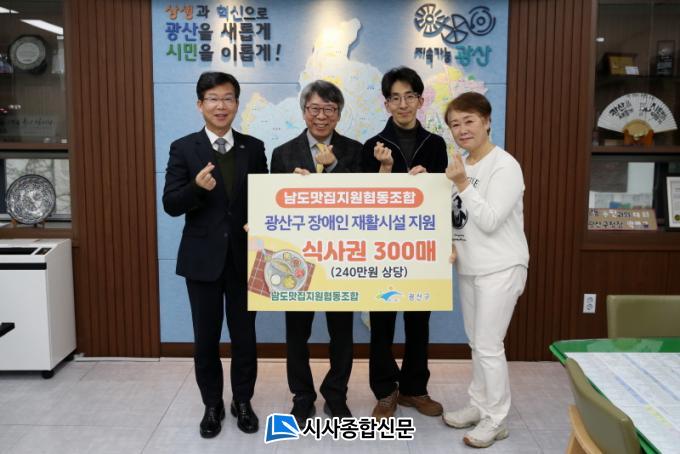 [½Ã»çÁ¾ÇսŹ® = ±è¿¬Èñ ±âÀÚ] ³²µµ¸ÀÁýÁö¿øÇùµ¿Á¶ÇÕ(ÀÌ»çÀå Á¤¹ÎÈ£)°¡ Áö³ 9ÀÏ ±¤»ê±¸ Àå¾ÖÀÎÀ» À§ÇØ ÇÑ½ÄºßÆä ½Ä»ç±Ç 300¸Å¸¦ ÈÄ¿øÇß´Ù.