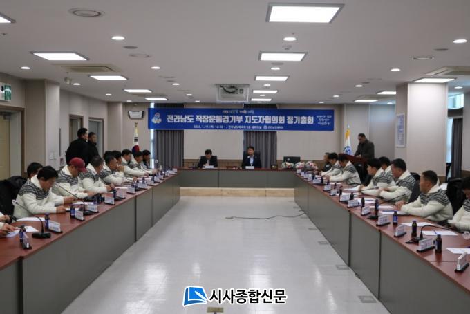 Àü¶ó³²µµÃ¼À°È¸(ȸÀå ¼ÛÁøÈ£)´Â 11ÀÏ Àü¶ó³²µµÃ¼À°È¸°ü 3Ãþ ´ëȸÀǽǿ¡¼ Àü¶ó³²µµ Á÷Àå¿îµ¿°æ±âºÎ ÁöµµÀÚµéÀÌ 2024³â ½ÃÁðÀ» ¾ÕµÎ°í Àü³²Ã¼À° °æ±â·Â Çâ»ó, Á÷Àå¿îµ¿°æ±âºÎ ÁöµµÀÚÇùÀÇȸ Á¤±âÃÑȸ¸¦ °³ÃÖÇß´Ù°í ¹àÇû´Ù.