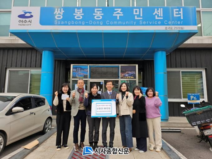 [½Ã»çÁ¾ÇսŹ® = ¿À½ÂÅà ±âÀÚ] ¿©¼ö½Ã¹Î°£¾î¸°ÀÌÁý¿¬ÇÕȸ(ȸÀå ±è°æÇÏ)°¡ Áö³ 17ÀÏ ½ÖºÀµ¿Áֹμ¾ÅÍ·ê ¹æ¹®ÇØ Áö¿ªÀÇ Àú¼Òµæ °¡Á¤ ¹ÌÃëÇÐ ¾Æµ¿À» À§ÇØ »ç¿ëÇØ ´Þ¶ó¸ç ¼º±Ý 50¸¸ ¿øÀ» Àü´ÞÇß´Ù.