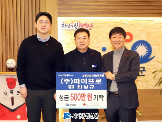 [½Ã»çÁ¾ÇսŹ® = ¿À½ÂÅà ±âÀÚ] ¢ßÆÄÀÌÇÁ·Î(´ëÇ¥ ÃÖ¼º±Ô)°¡ Áö³ 18ÀÏ ¾î·Á¿î ÀÌ¿ôÀ» À§ÇØ ¡®Èñ¸Á2024³ª´®Ä·ÆäÀΡ¯¿¡ ¼º±Ý 500¸¸ ¿øÀ» ±âŹÇÏ¿© »ç¶ûÀÇ ¿ÂµµÅ¾ ¿Ã¸®±â¿¡ µ¿ÂüÇÏ¿´´Ù.