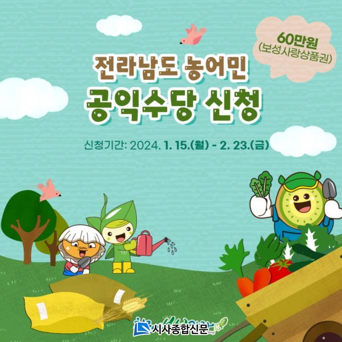 ³ó¾î¹Î °øÀͼö´çÀº 1°¡±¸´ç ¿¬ 1ȸ º¸¼º»ç¶û»óǰ±Ç 60¸¸ ¿øÀ» Áö±ÞÇÏ´Â Á¦µµ·Î, ³ó¾î¹ÎÀÇ »îÀÇ Áú Çâ»ó°ú Áö¿ª°æÁ¦ Ȱ¼ºÈ ¹× ³ó¾÷¡¤³óÃÌ, ¾î¾÷¡¤¾îÃÌÀÇ °øÀÍÀû ±â´É ÁõÁø µîÀÇ ¿ªÇÒÀ» ÇØ¿Ô´Ù. ƯÈ÷, ¿ÃÇØºÎÅÍ´Â ´ë»óÀÚ°¡ ÀÔ¿ø µîÀÇ ÀϽÃÀû »çÀ¯·Î °øÀͼö´çÀ» Á÷Á¢ ¹Þ±â ¾î·Á¿ì¸é À¾¸éÀåÀÇ È®ÀÎ ÈÄ Á÷°èÁ¸ºñ¼Ó ¶Ç´Â ¼¼´ë¿øÀÌ ´ë½Å ¹ÞÀ» ¼ö ÀÖ´Ù.
