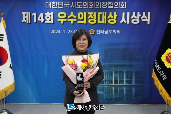 [½Ã»çÁ¾ÇսŹ® = ¿À½ÂÅà ±âÀÚ] Àü³²µµÀÇȸ ¹Ú°æ¹Ì ÀÇ¿ø(´õºÒ¾î¹ÎÁÖ´ç, ±¤¾ç4)ÀÌ Áö³ 1¿ù 23ÀÏ(È) ´ëÇѹα¹½ÃµµÀÇȸÀÇÀåÇùÀÇȸ°¡ ÁÖ°üÇÑ Á¦14ȸ ¿ì¼öÀÇÁ¤´ë»ó ½Ã»ó½Ä¿¡¼ ¿ì¼öÀÇÁ¤´ë»óÀ» ¼ö»óÇß´Ù.