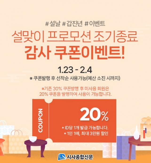 [½Ã»çÁ¾ÇսŹ® = ±è¿¬Èñ ±âÀÚ] Àå¼ö±º ³óƯ»ê¹° Á÷¿µ ¿Â¶óÀÎ ¼îÇθô ¡°Àå¼ö¸ô¡±¿¡¼ 1¿ù 23ÀϺÎÅÍ ¼³¸ÂÀÌ ÇÁ·Î¸ð¼Ç Á¶±âÁ¾·á °¨»çÀÇ Àǹ̷Π20% ÇÒÀÎ À̺¥Æ®¸¦ Ãß°¡ ÁøÇàÇÑ´Ù.