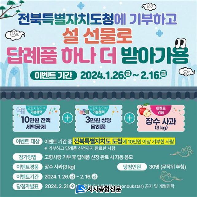 [½Ã»çÁ¾ÇսŹ® = ±è¿¬Èñ ±âÀÚ] ÀüºÏƯº°ÀÚÄ¡µµ°¡ ¹ÎÁ· ´ë¸íÀý ¼³À» ¸Â¾Æ ±âÁ¸ ÇýÅÿ¡ Ãß°¡ ÇýÅÃÀ» ´õÇÑ °íÇâ»ç¶û±âºÎ À̺¥Æ®¸¦ ÁøÇàÇÑ´Ù°í ¹àÇû´Ù.