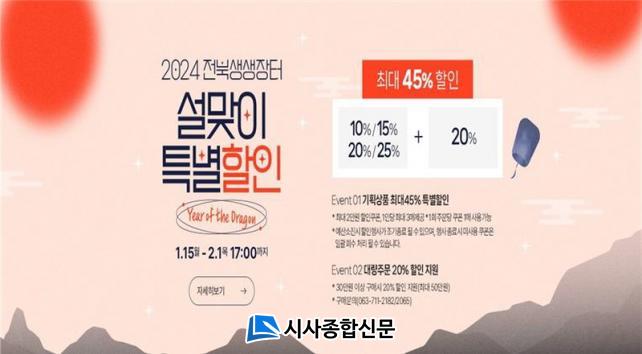 À̹ø ¼³ ¸íÀý ±âȹÀüÀº ½Å¼± ³ó»ê¹°¿¡¼ Ãࡤ¼ö»ê¹°, °¡°ø½Äǰ±îÁö 356¿© °³ÀÇ ´Ù¾çÇÑ »óǰµéÀ» ´ë»óÀ¸·Î ±âº» 20% ÇÒÀÎÄíÆù Áö¿ø°ú ÀÔÁ¡»çÀÇ ÀÚü 10⁓25% Ãß°¡ ÇÒÀÎ ÄíÆùÀ» Æ÷ÇÔÇØ ÃÖ´ë 45%±îÁö ÇÒÀÎ ÆÇ¸ÅÇÑ´Ù. ÇÒÀÎ ÄíÆùÀº 1ÁÖ¹® ´ç 1¸Å »ç¿ë °¡´ÉÇϸç 1Àδç ÃÖ´ë 3¸Å, 2¸¸¿ø±îÁö ÇÒÀεǸç, Åùèºñ´Â ¹«·áÀÌ´Ù.