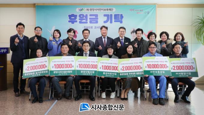 À̹ø¿¡ ±âŹµÈ ±â±ÝÀº ¡ã±¤¾ç½Ã»ê¸²Á¶ÇÕ(Á¶ÇÕÀå ¼Û¹é¼·) 1õ¸¸¿ø ¡ã(ÁÖ)¸¸º¸Áß°ø¾÷(´ëÇ¥ ³²¾çÁØ) 1õ¸¸¿ø ¡ãµ¿±¤¾ç³óÇù ³ó°¡ÁֺθðÀÓ(ȸÀå ¹ÚÇü¾Ö) 2¹é¸¸¿ø ¡ãµ¿±¤¾ç³óÇù ÁֺδëÇÐ Ãѵ¿Ã¢È¸(ȸÀå ±è±Ý¼ø) 2¹é¸¸¿ø ¡ã¢ß¼±¤¾ç±â¾÷(´ëÇ¥ Á¤¿ìÅÂ) 2¹é¸¸¿ø ¡ã±¤¾ç½ÃÆÄÅ©°ñÇÁÇùȸ(ȸÀå Ç㸸ȣ) 1¹é¸¸¿ø ¡ã¿ë°¾î¸°ÀÌÁý(¿øÀå ¹Ú¼øÀÚ) 1¹é¸¸¿ø µî ÃÑ 2õ8¹é¸¸¿øÀÌ´Ù.