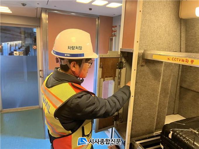 | ¹ÚÇØ±Ù Àü³²º»ºÎ Â÷·®Ã³ÀåÀÌ 24ÀÏ KTX¿Â÷¸¦ Á¡°ËÇϰí ÀÖ´Ù. |
