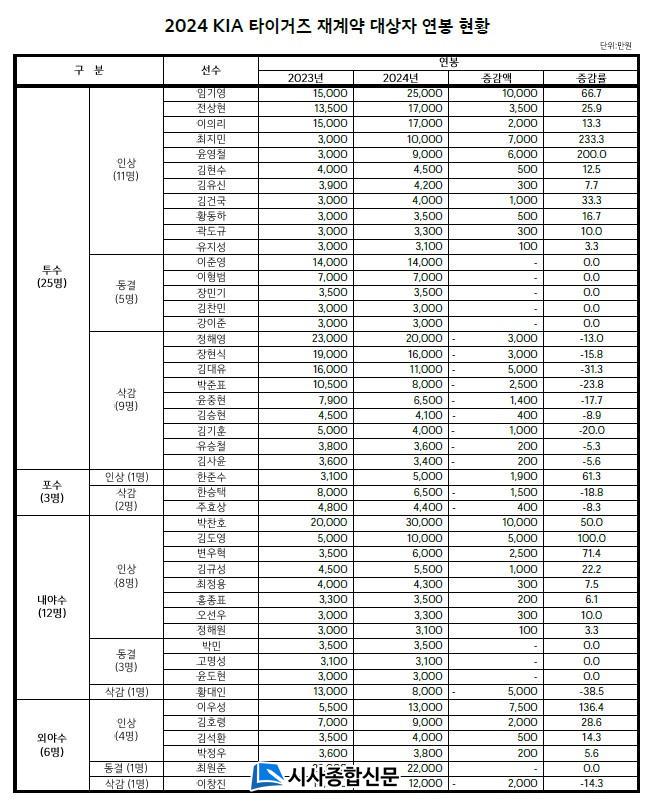 [½Ã»çÁ¾ÇսŹ® = ¿À½ÂÅà ±âÀÚ] KIA ŸÀ̰ÅÁî°¡ 25ÀÏ 2024 ½ÃÁ𠿬ºÀ Àç°è¾à ´ë»óÀÚ 46¸í°ú °è¾àÀ» ¸¶¹«¸®Çß´Ù. Àç°è¾à ÇÑ °¡¿îµ¥ ÀλóµÈ ¼±¼ö´Â 24¸íÀ̸ç, µ¿°á 9¸í, »è°¨ 13¸íÀÌ´Ù.