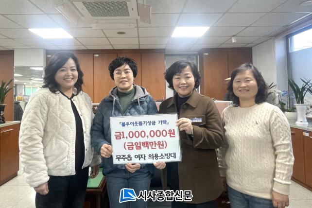 ¹«ÁÖ±º¿¡ µû¸£¸é ¹«ÁÖÀ¾ ¿©ÀÚÀÇ¿ë¼Ò¹æ´ë°¡ Áö³ 24ÀÏ ¹«ÁÖÀ¾ÇàÁ¤º¹Áö¼¾Å͸¦ ã¾Æ ¼º±Ý 1¹é¸¸¿øÀ» ±âŹÇß´Ù. ÀÌ ÀÚ¸®¿¡¼ À¯ÀÏ¿Á ´ëÀåÀº ¡°Ãß¿î ³¯¾¾¿¡ ¾î·Á¿î ÀÌ¿ôµéÀÌ Á¶±Ý ´õ µû¶æÇÏ°í Æí¾ÈÇÏ°í ¾ÈÀüÇÏ°Ô º¸³»¼ÌÀ¸¸é Çϴ ȸ¿øµéÀÇ ¸¶À½À» ¸ð¾Ò´Ù¡±¶ó¸ç ¡°¼º±ÝÀÌ ¿ì¸® Áö¿ª Àú¼Òµæ ÀÌ¿ôµéÀ» µ½´Âµ¥ ¿ä±äÇÏ°Ô ¾²ÀÌ±æ ¹Ù¶õ´Ù¡±¶ó°í ÀüÇß´Ù.