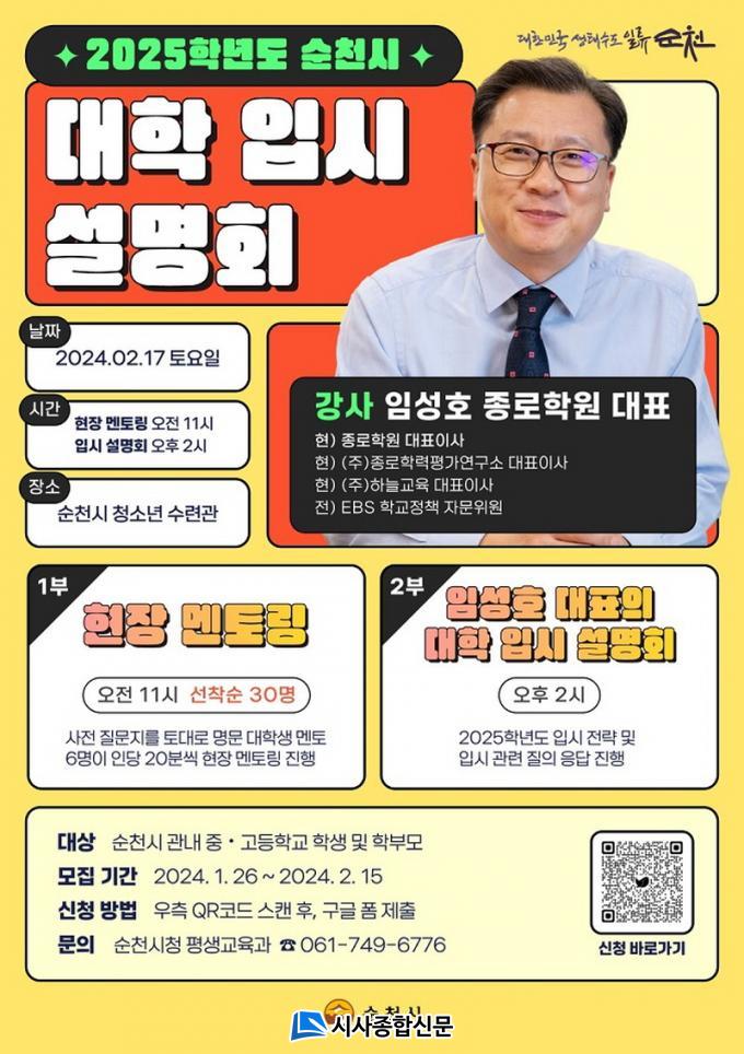 ¼øÃµ½Ã °ü°èÀÚ´Â ¡°2025Çг⵵´Â ÅëÇÕ ±³À°°úÁ¤ ÃëÁö¿¡ µû¸¥ ¼±Åðú¸ñ Çʼö ¹Ý¿µ ÆóÁö ´ëÇÐÀÌ ´Ã¾î³ª °í¹ÎÀÌ ¸¹Àº Çкθð¿Í ÇлýµéÀÌ ´ëÀÔ Àü·«À» ¼¼¿ì´Â µ¥ À̹ø ¼³¸íȸ°¡ µµ¿òÀÌ µÇ±æ ¹Ù¶õ´Ù¡±°í ¸»Çß´Ù.