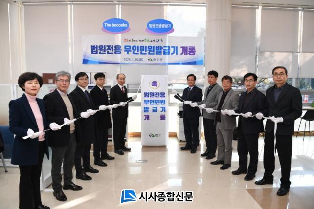 [½Ã»çÁ¾ÇսŹ® = ±è¿¬Èñ ±âÀÚ] ¿ÏÁÖ±ºÀÌ ±ºÃ» ³» 1Ãþ ¿¸°¹Î¿ø°ú¿¡ ¹ý¿øÀü¿ë ¹«Àιοø¹ß±Þ±â¸¦ ¼³Ä¡Çϰí, Áö³ 30ÀÏ À¯ÈñÅ ¿ÏÁÖ±º¼ö¿Í ¿ÀÀ缺 ÀüÁÖÁö¹æ¹ý¿øÀåÀÌ Âü¼®ÇÑ °¡¿îµ¥ °³Åë½ÄÀ» °¡Á³´Ù.